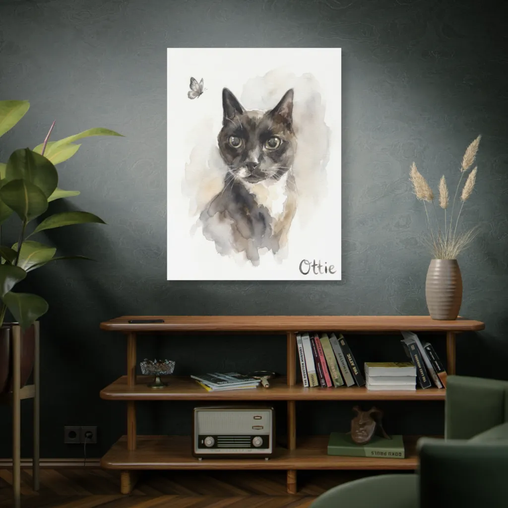 Ottie's wide-eyed fascination with that fluttering friend proves even art can't distract from a good hunt!