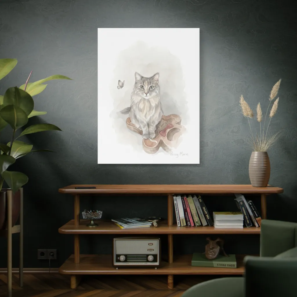 "Prissy Marie's Gentle Gaze" achieves an avant-garde juxtaposition of feline regality and confectionary geometry. The ephemeral watercolors exhibit a sublime tonal harmony, presenting a visceral quietude. A profound statement on temporary thrones.