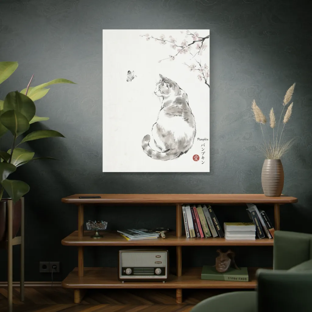 Pumpkin's serene gaze perfectly captures her introspective spirit. The gentle ink lines convey her thoughtful personality and unique quiet grace, revealing a soul utterly at peace with the butterfly.