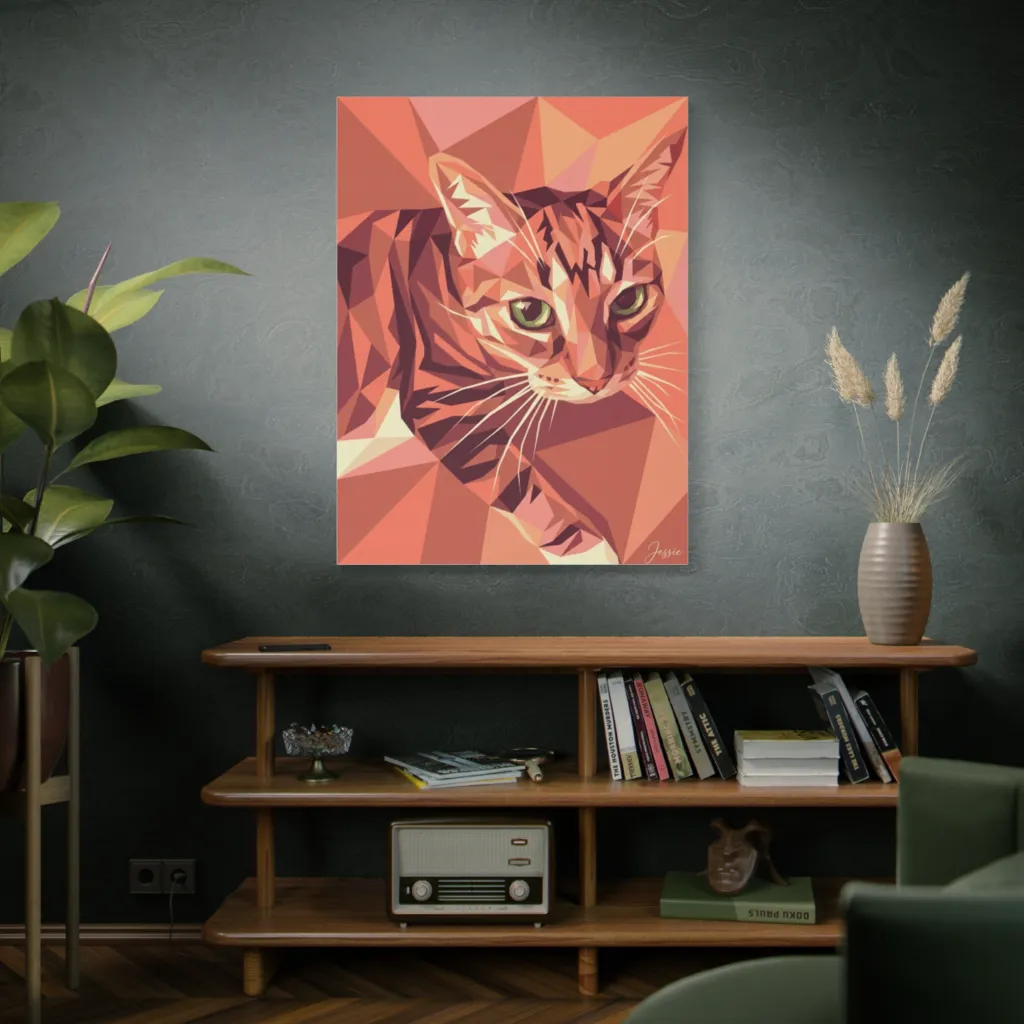 This piece boldly blends traditional portraiture with a cutting-edge digital aesthetic. Jessie’s “Refracted Gaze” brilliantly uses fragmented geometric shapes, showcasing innovative techniques that redefine contemporary pet art. Truly striking!