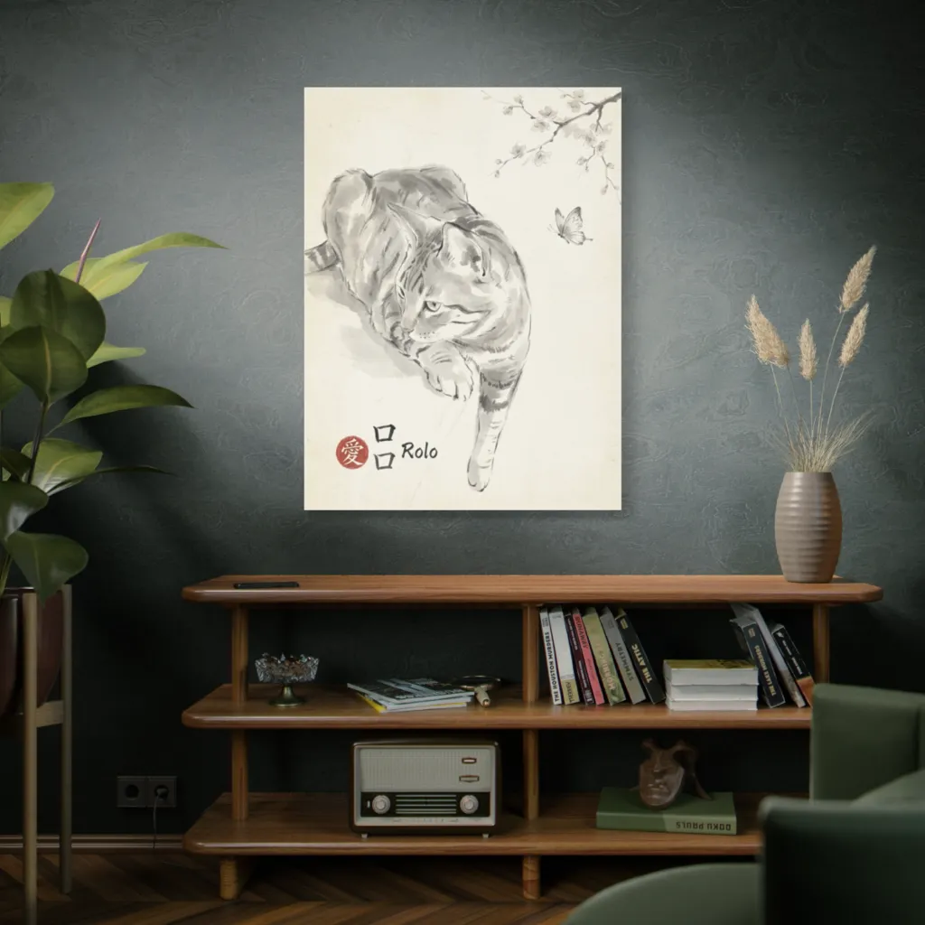 The Sumi-e palette subtly balances cool grays with warm blossom accents. This chromatic harmony perfectly captures Rolo's focused, playful energy, creating sophisticated emotional resonance. Superb color economy!