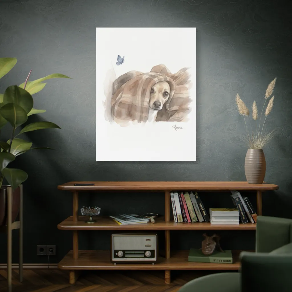 This digital watercolor innovatively blends classic portraiture with modern aesthetics. The luminous softness and bold technique beautifully capture Rosie's curious spirit, pushing contemporary art boundaries.