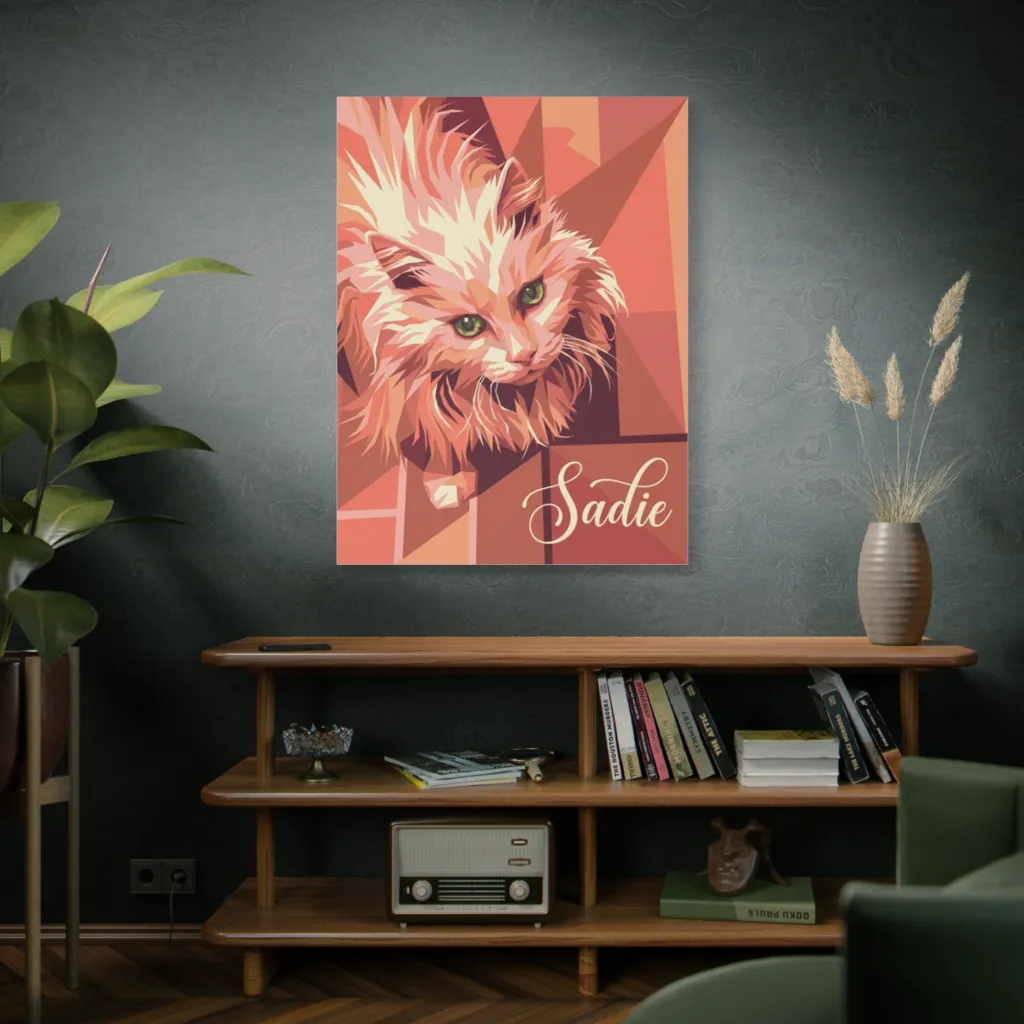 This striking geometric pop art composition commands attention, a vibrant, modern take on portraiture. Sadie's bold presence and verdant gaze would undoubtedly captivate in any prestigious exhibition.