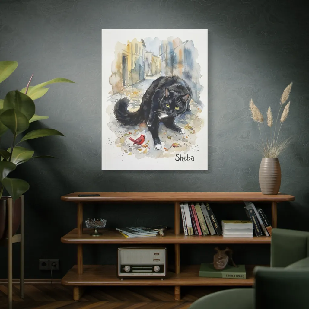 The composition's dynamic tension, reminiscent of a modern genre painting, gives Sheba an undeniable presence. It commands attention, transforming a simple scene into a compelling, exhibition-worthy narrative. Truly captivating.