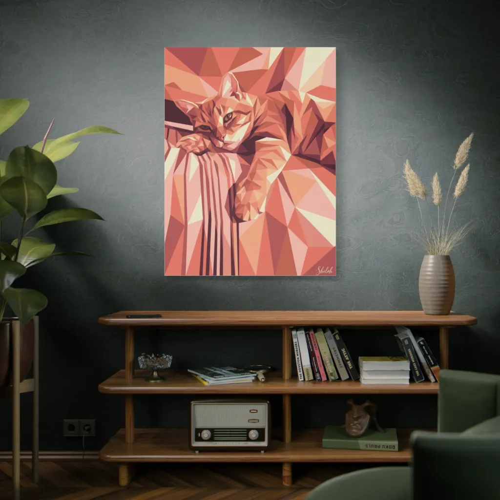 Shiloh's low-poly rendering brilliantly fuses traditional pet portraiture with cutting-edge digital aesthetics. The polygonal zen brings bold, innovative energy to contemporary pet art. Truly captivating.