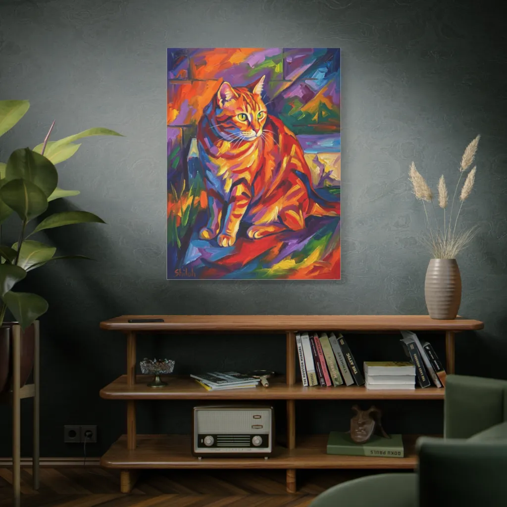 Shiloh's visceral impasto, a riot of rainbow hues, achieves a startling juxtaposition. This avant-garde feline gazes with electric curiosity, challenging the very notion of 'cat portraiture.' A post-modern triumph, perhaps.