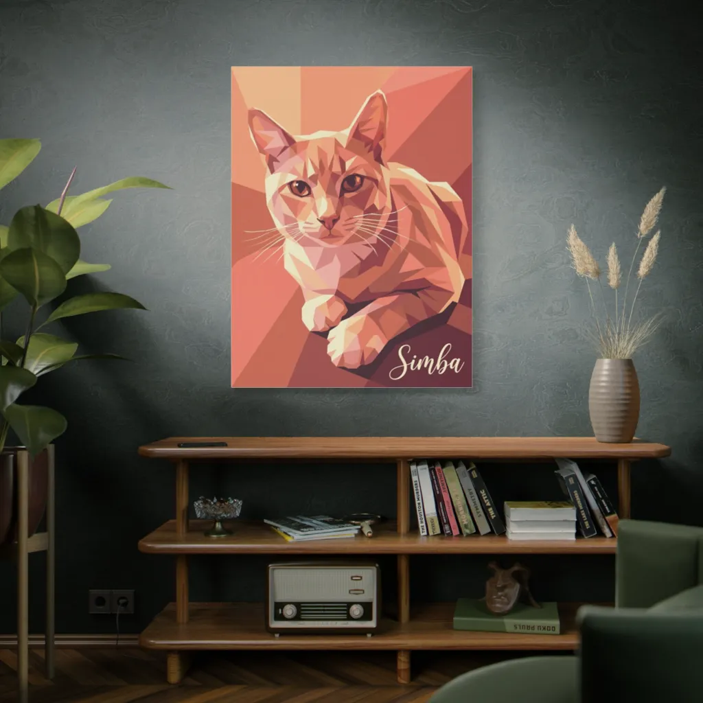 "Simba, Golden Gaze" brilliantly merges traditional pet portraiture with cutting-edge digital geometry. The glowing facets are a bold, innovative technique, showcasing contemporary artistry at its finest. A digital masterpiece!