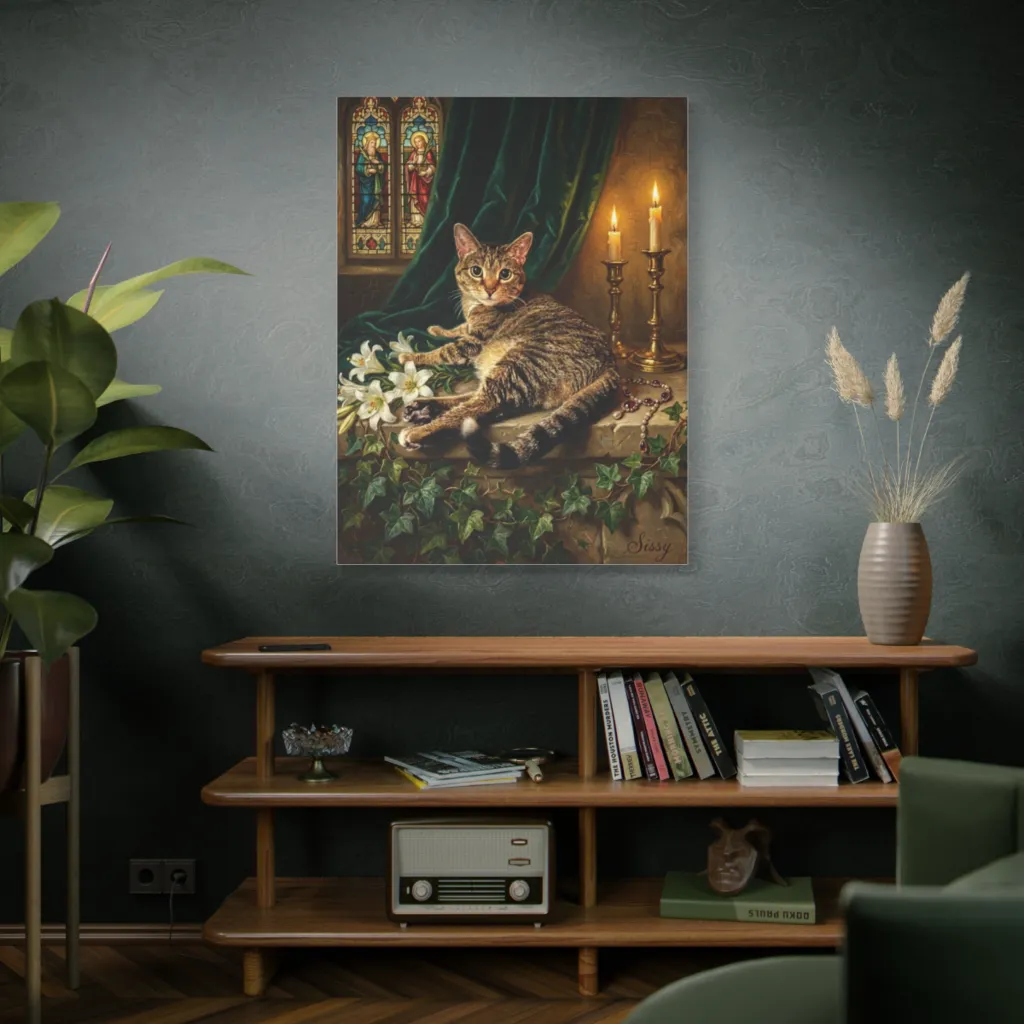 "Sissy's Quiet Vigil" presents an audacious juxtaposition: feline irreverence rendered with Renaissance gravitas. The tonal harmony and visceral subject presence elevate this tabby to an avant-garde deity. A minor masterpiece, indeed.