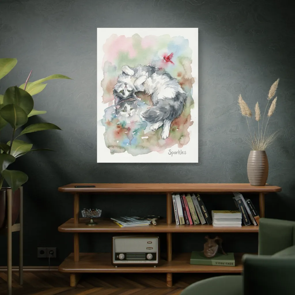 "Sparkles' Ethereal Reverie" achieves masterful tonal harmony; its soft hues and sprawling feline forms create an evocative, almost visceral domesticity. A profound juxtaposition of fluff and profundity. Genius, naturally.