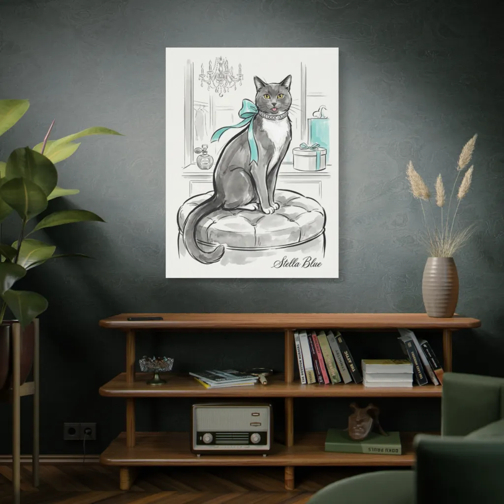 Stella Blue's elegant stance and delightful blep perfectly capture her "cat-walk" queen essence. Every line reveals her unique blend of posh charm and playful, pampered luxury. A true soul portrait!