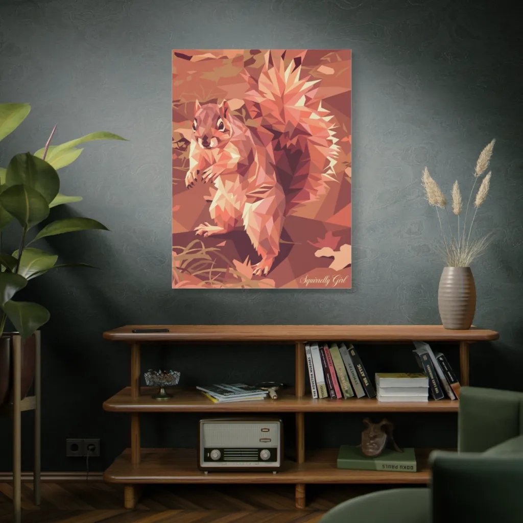 Faceted autumn hues sculpt an alert squirrel, a striking geometric portrait of charming woodland vitality. Squirrelly Girl herself proves every sharp angle can be utterly captivating.