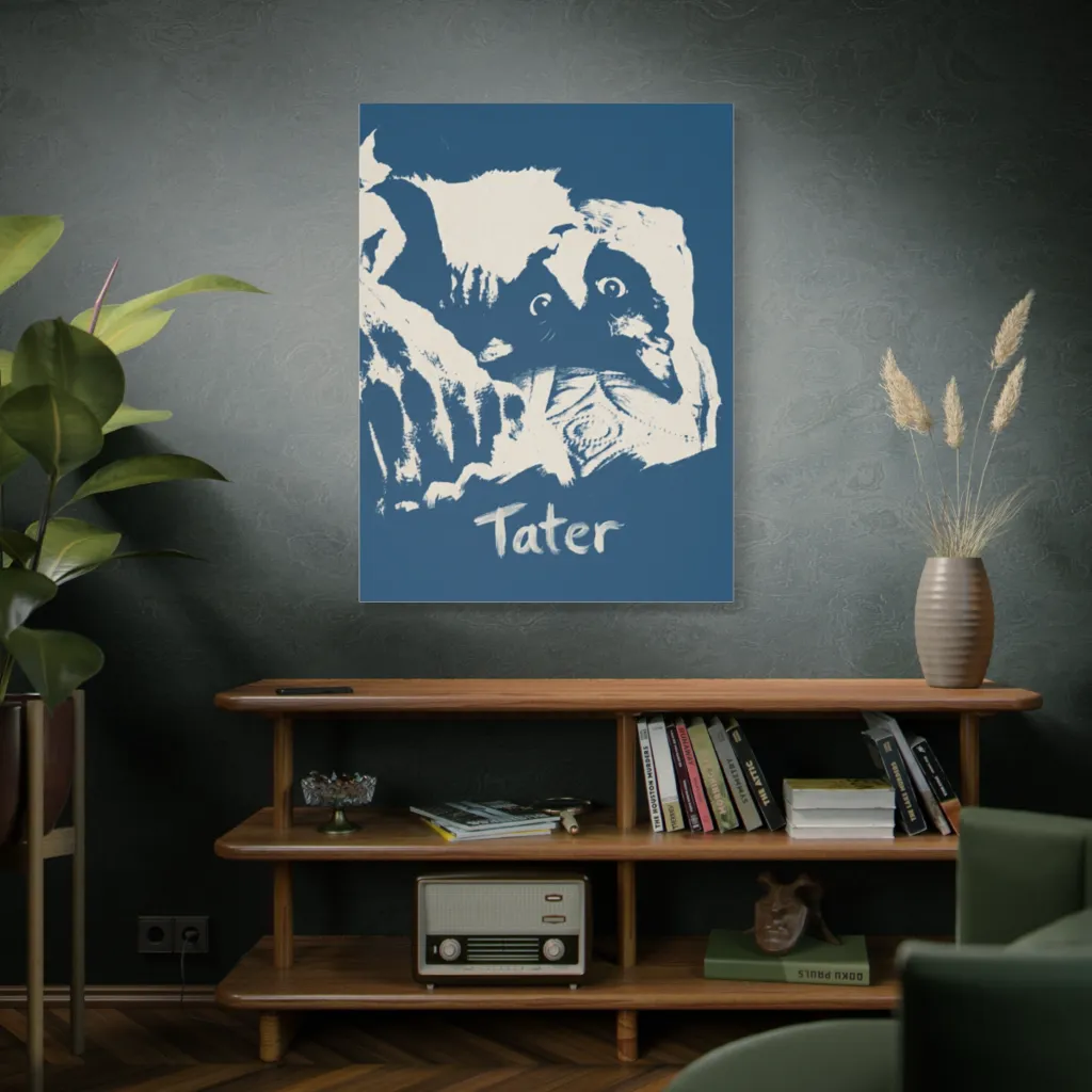This digital portrait innovatively blends traditional brushstroke textures with modern execution. Tater's expressive gaze from deep azure creates a bold, contemporary aesthetic, pushing digital portraiture boundaries with whimsical charm. So fresh!