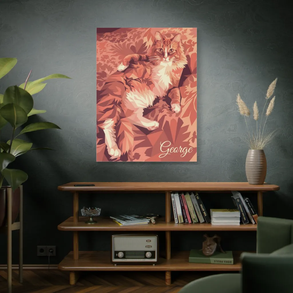 "The Amber Gaze of George" brilliantly redefines portraiture. Its low-poly aesthetic, merging traditional feline grace with digital angularity, is truly innovative. A bold, contemporary reinterpretation of pet artistry for the new age.