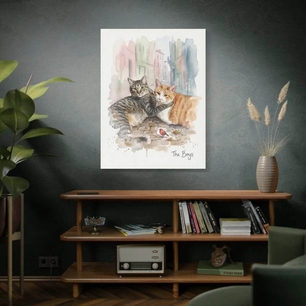 This masterwork innovatively marries traditional watercolor with a fresh, contemporary aesthetic. Its loose, expressive technique feels boldly modern, an innovative take on classic pet portraiture for a digital-native audience.