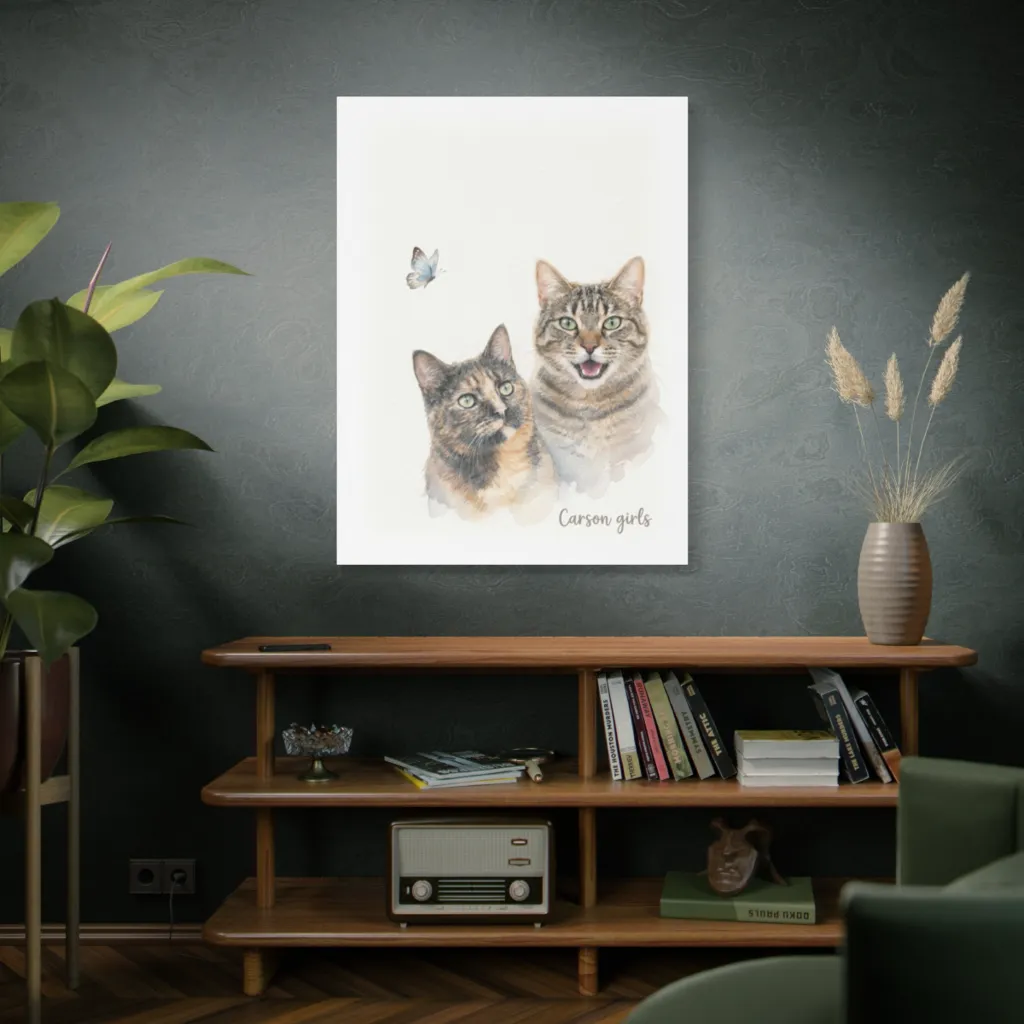 Soft, luminous watercolors capture two curious feline friends utterly enchanted by a delicate butterfly, creating a charmingly serene mood. The Carson girls, ever the graceful hunters, are utterly captivated by that butterfly, perhaps plotting its gentle capture.