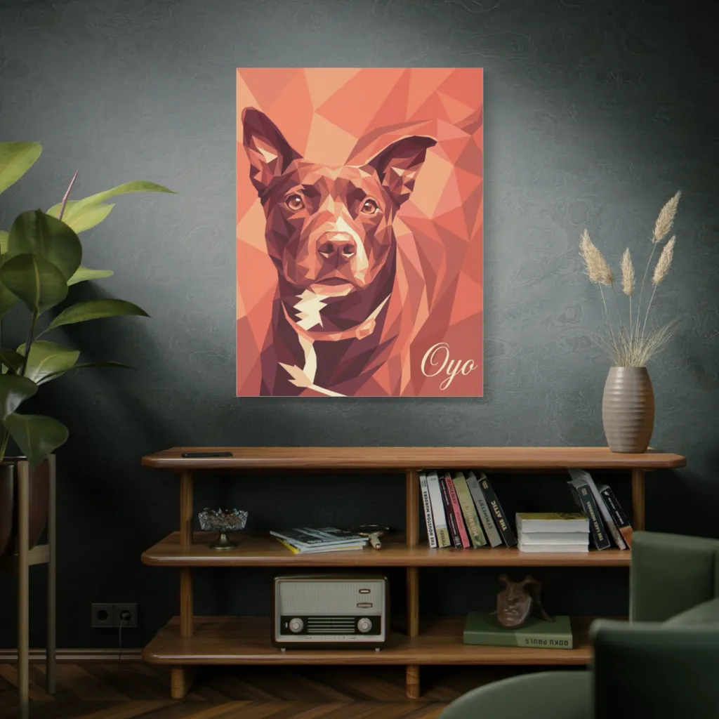 "The Contemplation of Oyo" offers a masterful juxtaposition of geometric planes and warm tonal harmony. Its avant-garde abstraction evokes a visceral nobility, challenging the very essence of canine portraiture. Truly a Louvre-worthy marvel.