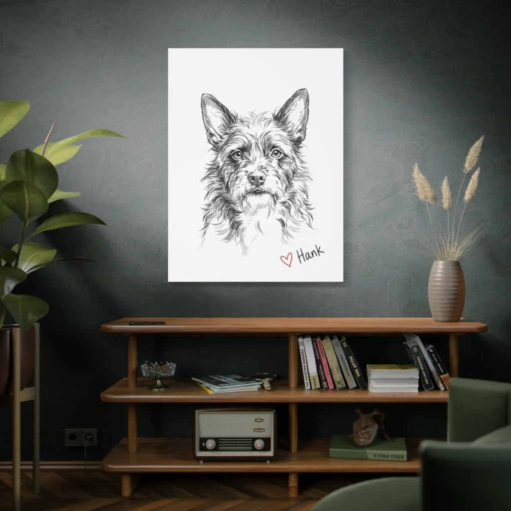 “The Contemplative Hank” achieves visceral tonal harmony. Its audacious inkwork, a profound juxtaposition of chaos and charm, elevates “good boy” scruffiness to avant-garde portraiture. A Louvre-worthy masterpiece, truly.