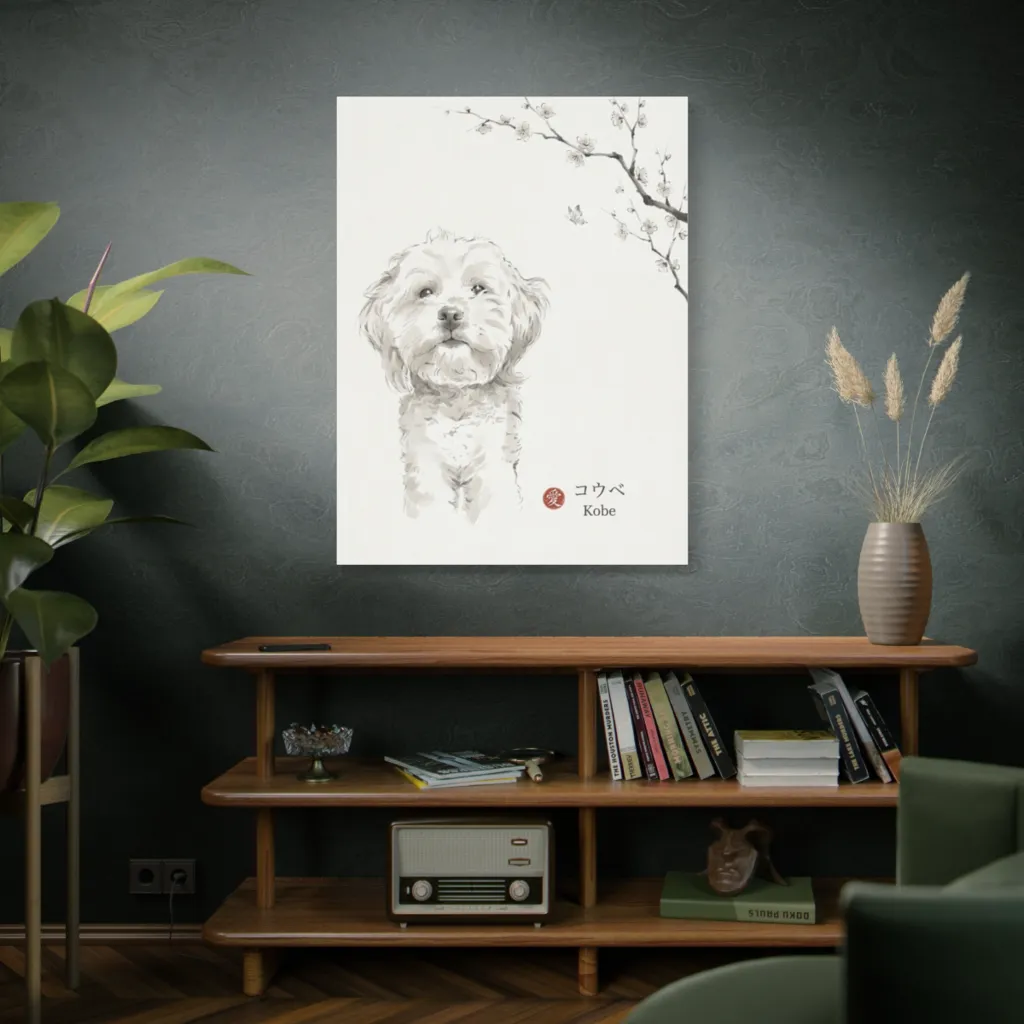 The subtle sumi-e palette masterfully uses chromatic harmony. Serene cool tones evoke peace, while a delicate warm accent captures Kobe's joyful contemplation. Brilliant balance!