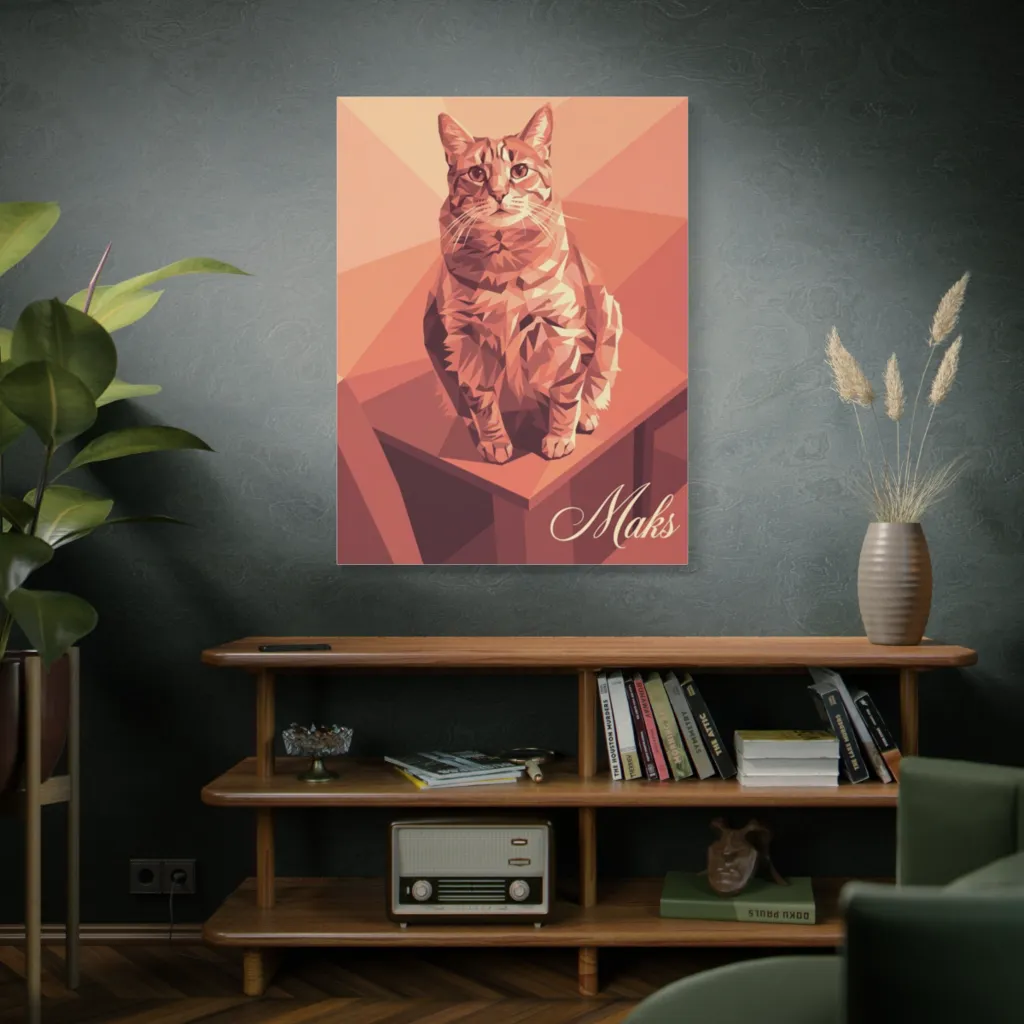“The Contemplative Maks”, with its geometric charm, perfectly suits a modern lounge above a raw oak console. Complement its pixelated monarch vibe with brushed brass accents and sleek leather for a sophisticated, playful statement.
