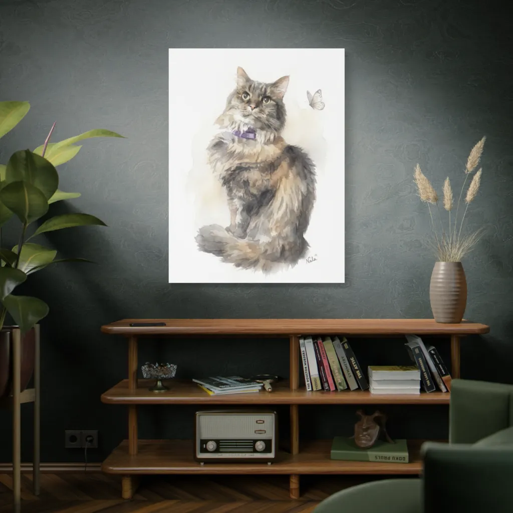 This piece radiates a delightful, playful serenity. Nala's fluffy focus creates a cozy, joyful atmosphere. Seeing her daily would spark gentle amusement and a heartwarming sense of charming intrigue.