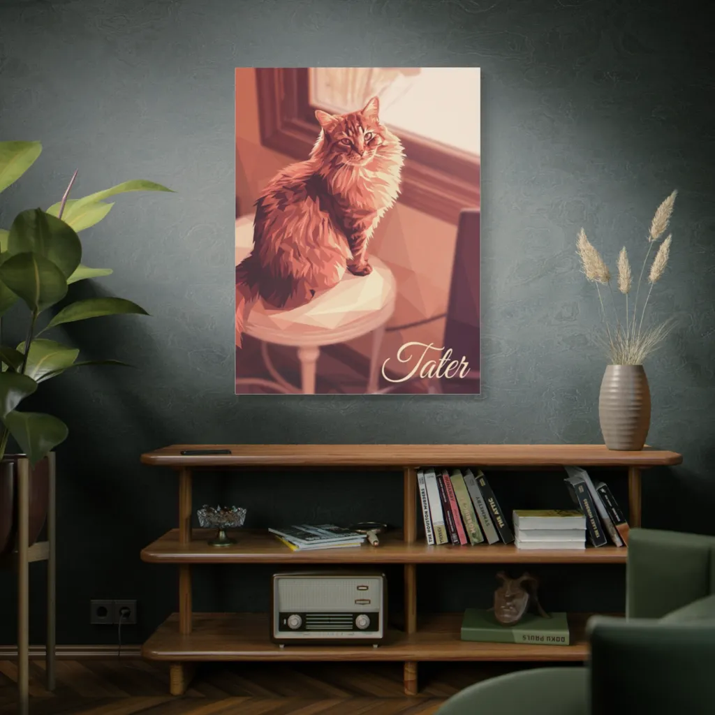 "The Contemplative Tater" perfectly captures Tater's regal soul. His attentive gaze and geometric stance reveal a unique, patient personality, making this low-poly portrait deeply special and full of character.