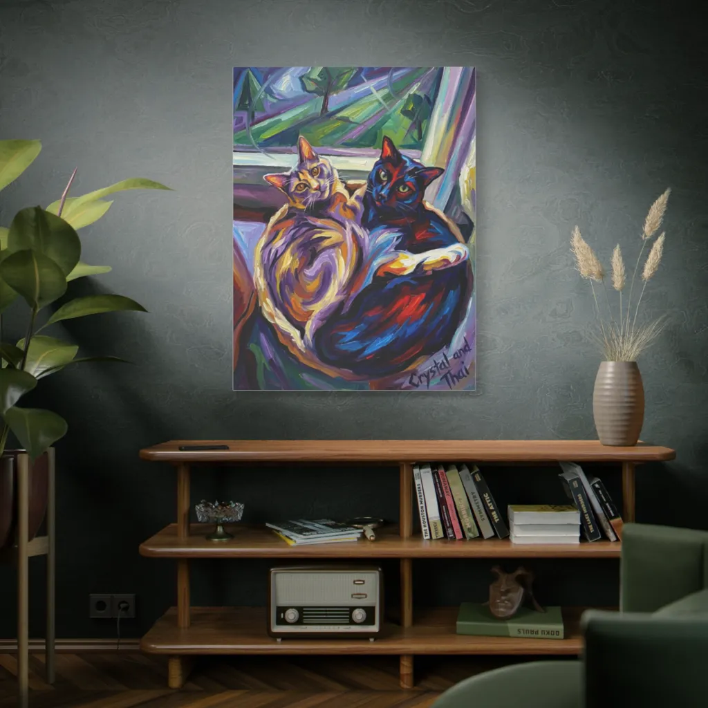 The Crystal and Thai Embrace beautifully captures their soulful connection and playful spirits. Their intertwined forms reveal an undeniable, heartwarming bond, making their unique personalities shine with captivating charm.