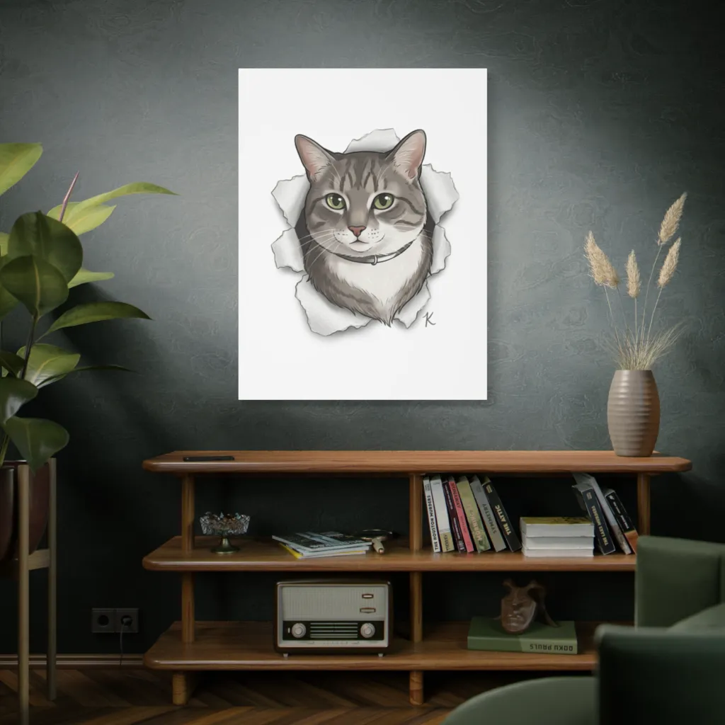 The vibrant, warm tabby hues against cooler, muted paper create dynamic chromatic harmony. K's curious charm is perfectly amplified by the playful, high-saturation palette, a masterful balance of energy and warmth.