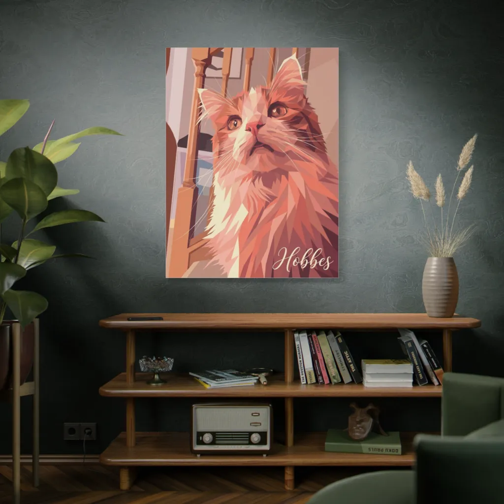The warm, saturated ginger mosaic perfectly captures Hobbes' curious intensity. Chromatic harmony and subtle complementary hues evoke his majestic spirit, a brilliant emotional resonance. Simply masterful!