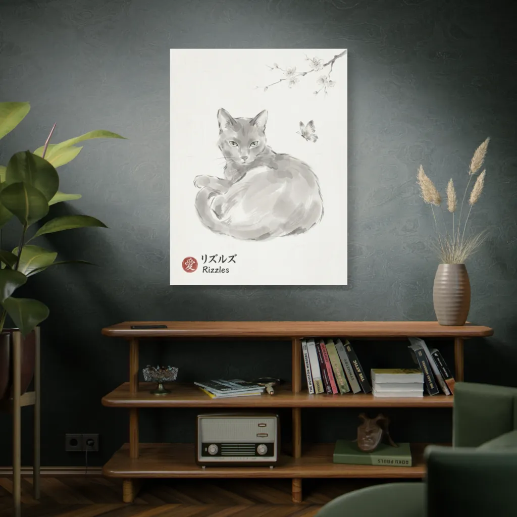 The ink wash's tonal harmony masterfully captures Rizzles' evocative gaze. A visceral juxtaposition of feline poise and ephemeral beauty, this piece almost justifies its existence outside the Louvre's hallowed halls.
