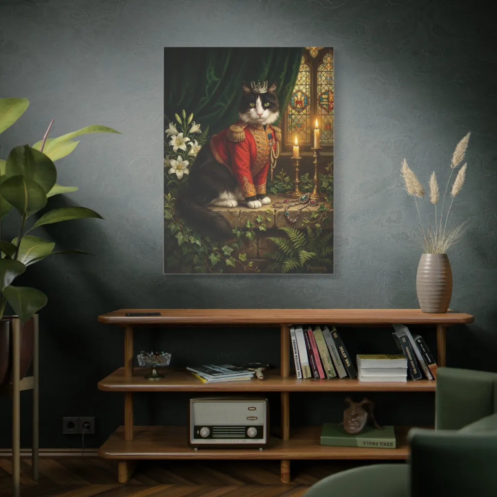 "The Vigil of Precious" masterfully juxtaposes feline regality with poignant human aspiration. Its tonal harmony and visceral brushwork elevate "Precious" beyond mere pet portraiture, establishing an avant-garde dialogue on sovereignty. A veritable triumph.