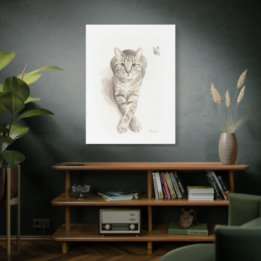 “The Vigil of Rockie” innovatively blends traditional watercolor softness with modern digital precision. The elegant composition and bold capture of Rockie's contemplation exemplify a cutting-edge approach where classic charm meets contemporary pet portraiture. Truly inspiring!