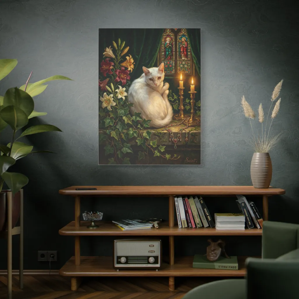 A masterful blend! This work brilliantly reimagines traditional gothic portraiture with digital opulence. The bold juxtaposition of sacred iconography and a modern pet subject is innovative, creating a truly striking narrative.