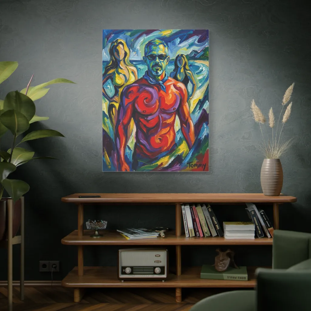 Tommy's powerful presence exudes electric confidence and sun-drenched joy. This art will daily infuse your space with an invigorating, bold energy, making you feel uplifted and ready to seize the day.