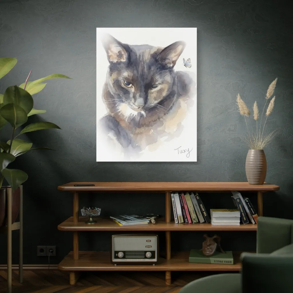 The muted pastels of 'Tuxy's Butterfly Reverie' achieve chromatic harmony, cool blues subtly balancing warm curiosity. Gentle saturation perfectly captures his serene, playful energy. A masterful demonstration of emotional color theory!