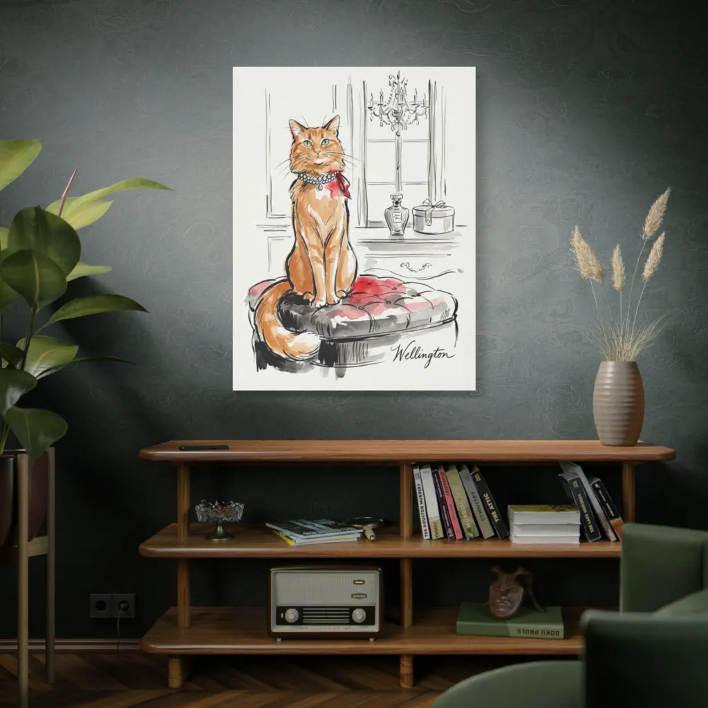 This piece radiates whimsical elegance, creating a sophisticated yet playful atmosphere. Daily, it would inspire knowing smiles and a sense of cozy, luxurious charm, reminding you of life's finer, feline joys.