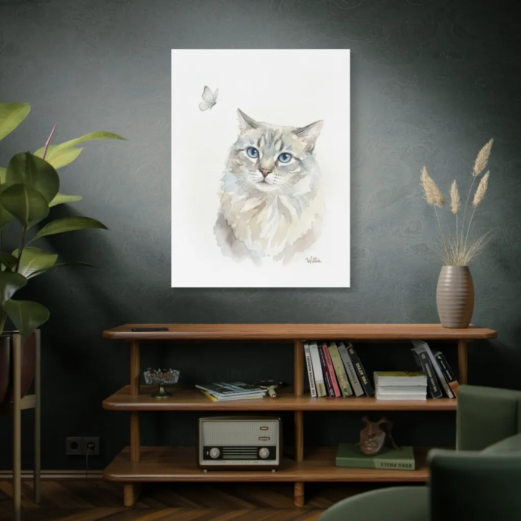 This piece brilliantly merges classic watercolor aesthetics with a contemporary digital sensibility. The ethereal rendering and innovative framing of Willie's gaze push traditional animal portraiture into exciting new artistic territory. Bold and captivating!