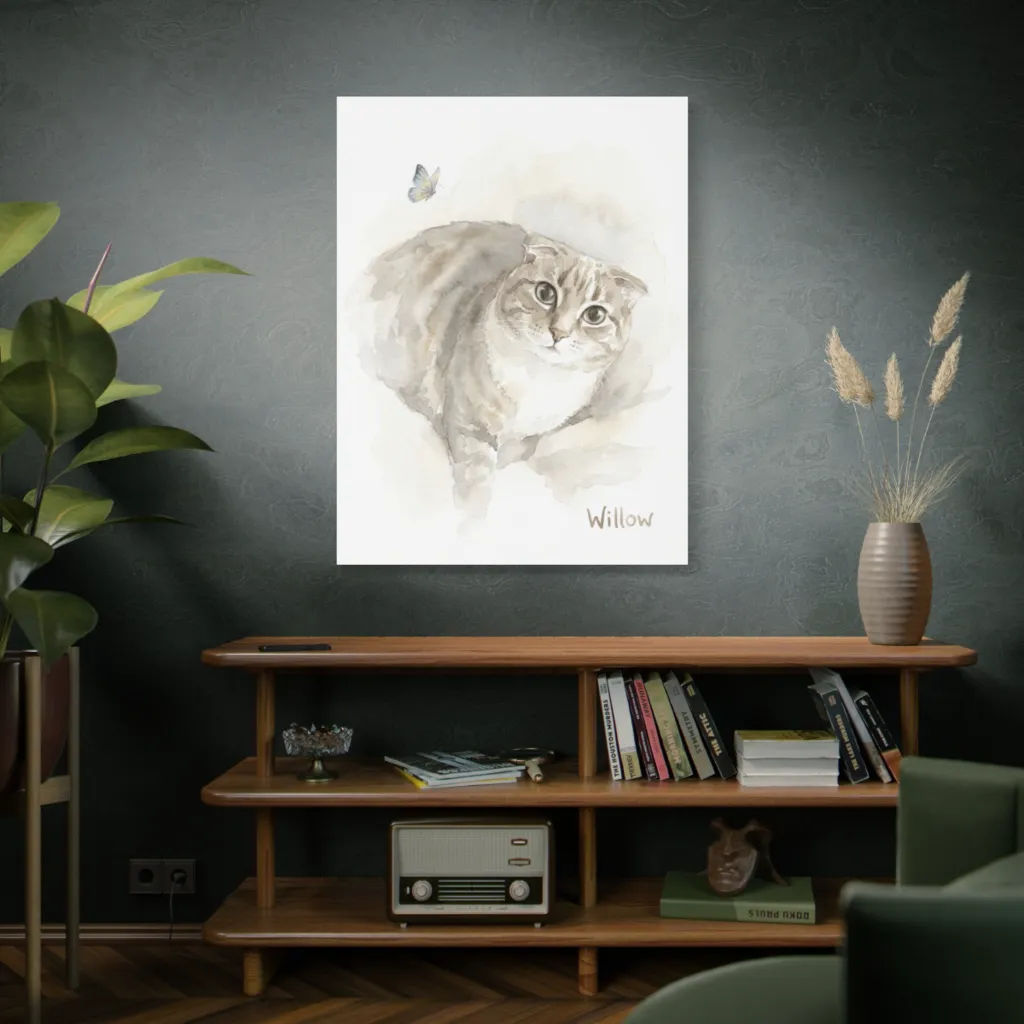 This piece radiates playful curiosity and gentle wonder. "Willow and the Azure Wing" infuses your space with daily heartwarming joy, creating a serene, comforting atmosphere that encourages innocent delight.