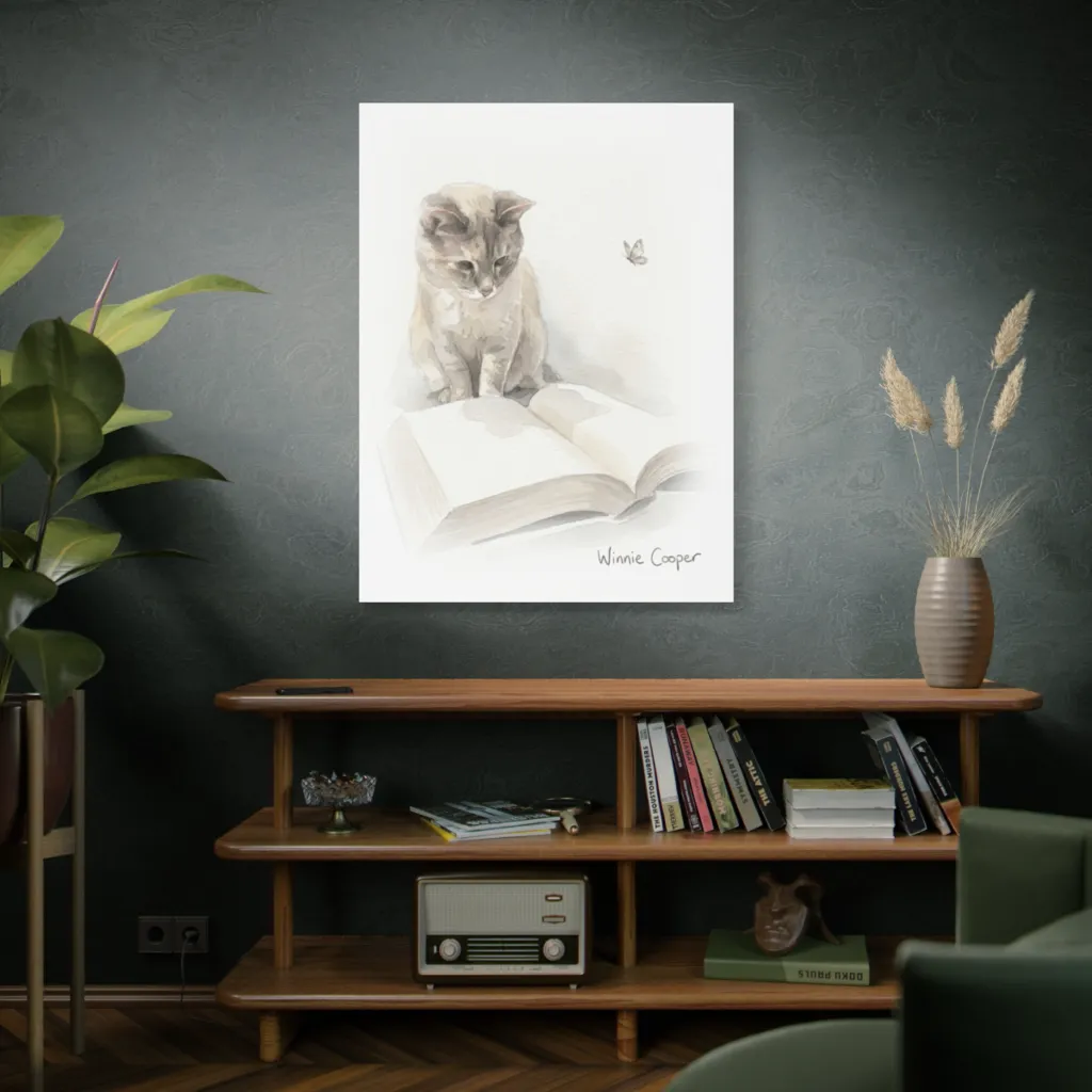 This thoughtful kitten, poised over a book while a butterfly flits, clearly channels Winnie Cooper's studious charm and gentle curiosity.