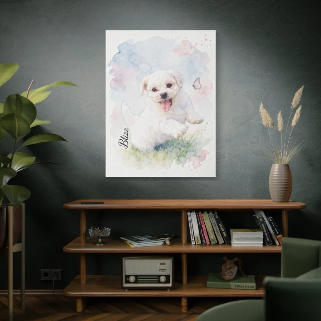 This piece brilliantly reinterprets traditional portraiture with a contemporary digital watercolor aesthetic. Blizz's whimsical pastel dream is innovatively bold, showcasing a fresh, vibrant approach to pet art.