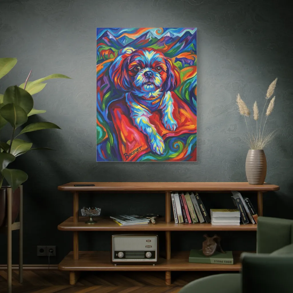 This avant-garde explosion of chromatic exuberance masterfully juxtaposes canine vivacity with a visceral landscape. A tonal cacophony, yet utterly harmonious. Revolutionary.