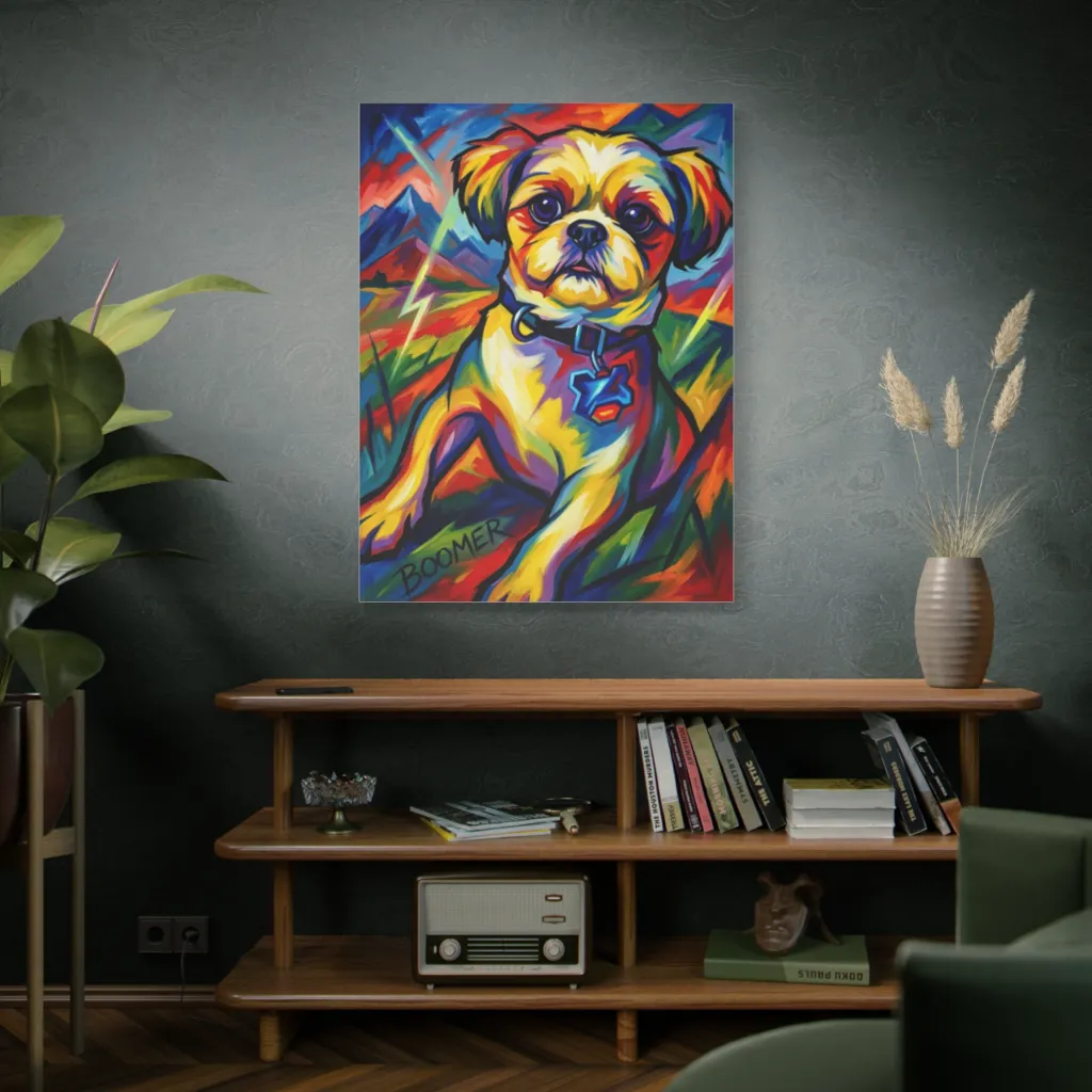 Boomer's playful, bold spirit radiates pure joy. This art sparks a daily feeling of vibrant love and energetic connection, a truly uplifting presence for any home.