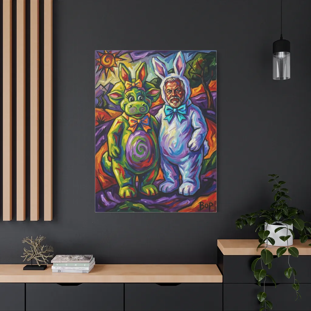 Bop's Arcadian Masquerade brilliantly fuses digital expressionism with classic portraiture. The absurd juxtaposition of mythical creatures showcases innovative storytelling and bold, experimental techniques, pushing contemporary pet art boundaries. Forward-thinking!