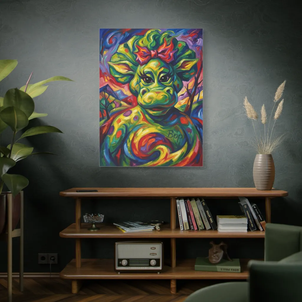 The psychedelic swirls are a masterclass in chromatic harmony, with vibrant complements perfectly capturing Bop's sassy, playful energy. High saturation radiates pure joy; truly resonant color work!