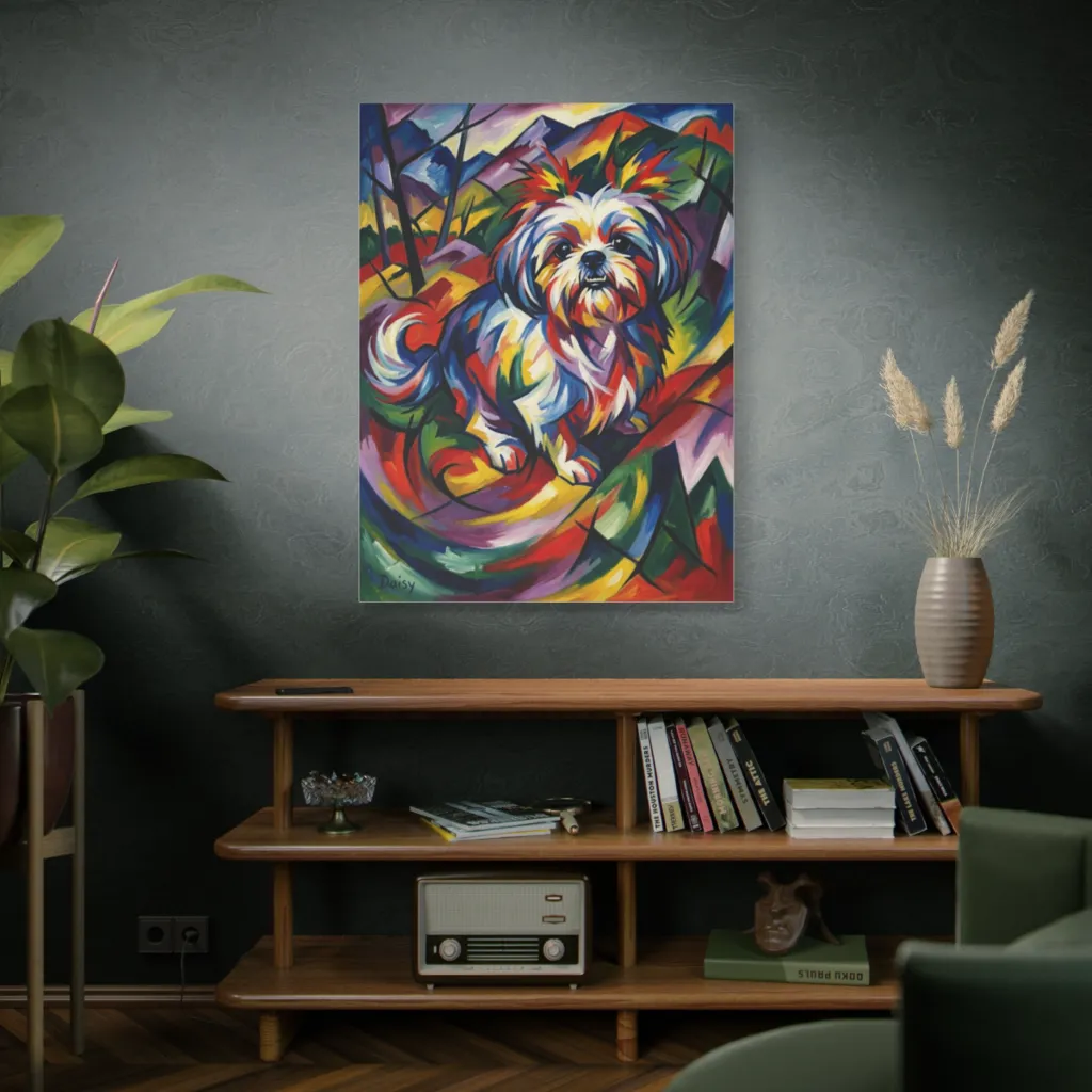 "Daisy, Vibrant Reverie" offers a compelling cubist deconstruction. The chromatic juxtaposition and visceral brushwork elevate Daisy beyond mere canine, achieving an almost avant-garde profundity. A truly startling modern masterwork.