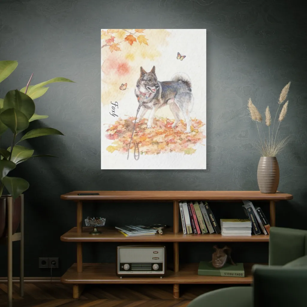 Foxy, with a grin and a wag, dances playfully through autumn's embrace, clearly chasing unseen butterfly dreams.