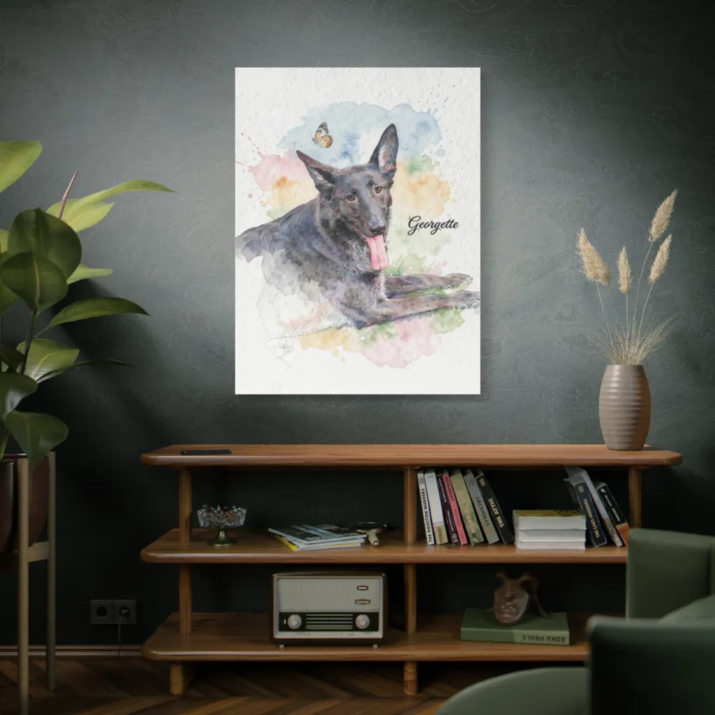 Georgette's visceral presence, rendered with audacious, splashy brushwork, achieves a sublime tonal harmony against the vibrant palette. A post-modern juxtaposition of canine ambition and avant-garde whimsy. Truly Louvre-worthy.