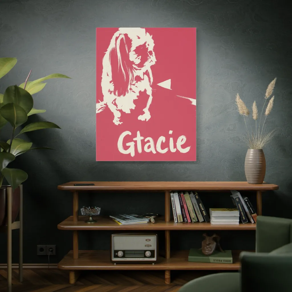 This bold, graphic portrait is uniquely captivating. "Gtacie on Crimson" possesses significant conversation value and emotional impact, making it a treasured addition to any collection. Excellent display potential and lasting appeal.