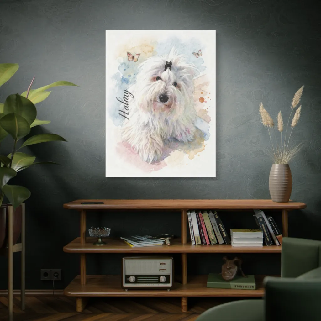 "Harry's Spring Reverie" masterfully juxtaposes the canine's visceral fluff against a dreamy watercolor avant-garde. The tonal harmony and delicate brushwork achieve an almost transcendent, Louvre-worthy whimsy. A profound commentary on existential butterfly contemplation.