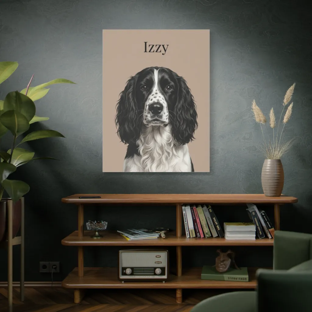 This piece emanates gentle warmth and serene devotion. Izzy's loyal gaze creates a comforting, grounding atmosphere. Seeing it daily would evoke a quiet joy and profound sense of companionship. Pure, heartfelt charm.