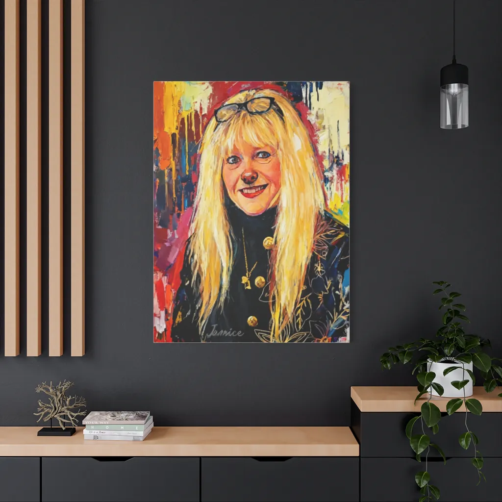 “Janice, A Golden Radiance” explodes with joy! The brilliant golden hues, balanced by subtle cool accents, achieve electric chromatic harmony. This high saturation perfectly captures Janice's energetic, radiant spirit. A vibrant masterclass in warm/cool dynamics!